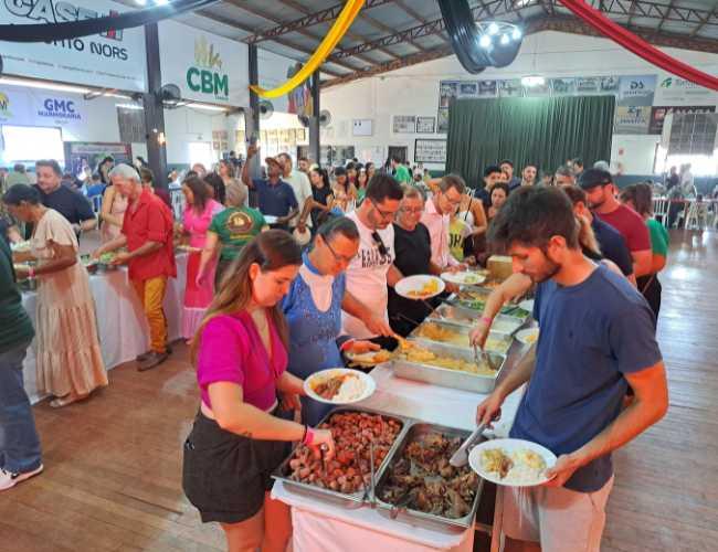 Além do prato principal — o Boi no Rolete, servido com mandioca, arroz, saladas e creme de milho —, o evento contou com apresentações das Invernadas Dente de Leite, Pré-Mirim e Juvenil, sorteio de brindes e show ao vivo com a dupla Rose & Rafael.